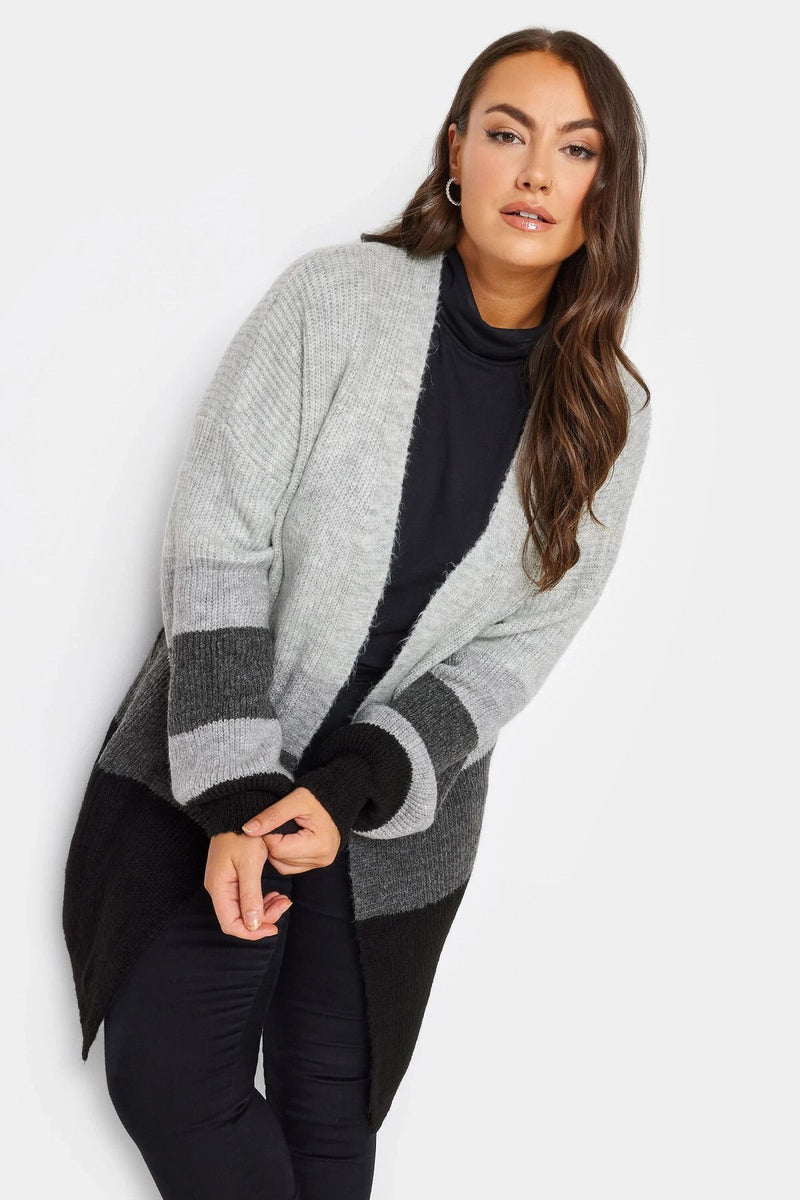 Büyük Beden Uzun Kollu Renk Bloklu Önü Kapamasız Triko Hırka 301881