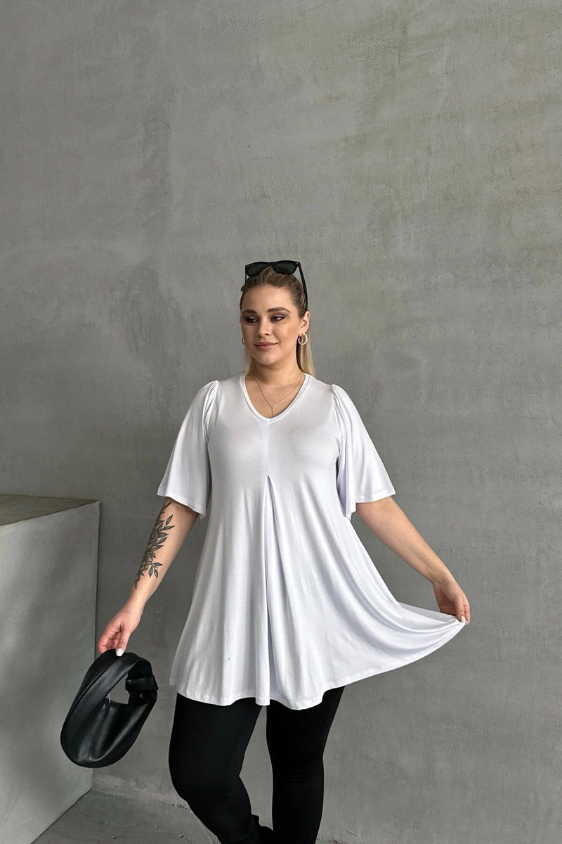 Büyük Beden V Yaka Desensiz Asimetrik Kesim Likralı Bluz MDL-2