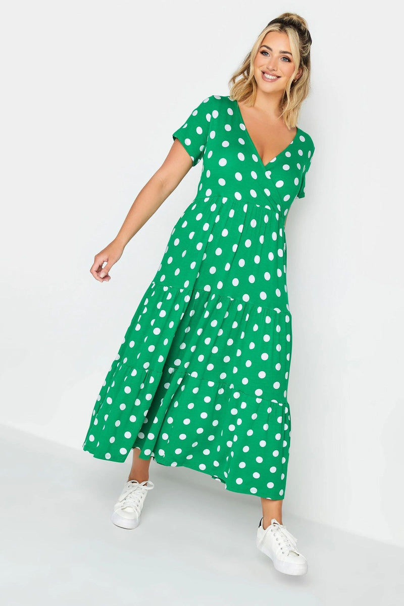 Büyük Beden V Yaka Puantiyeli Midi Boy Yarım Kollu Elbise 302352