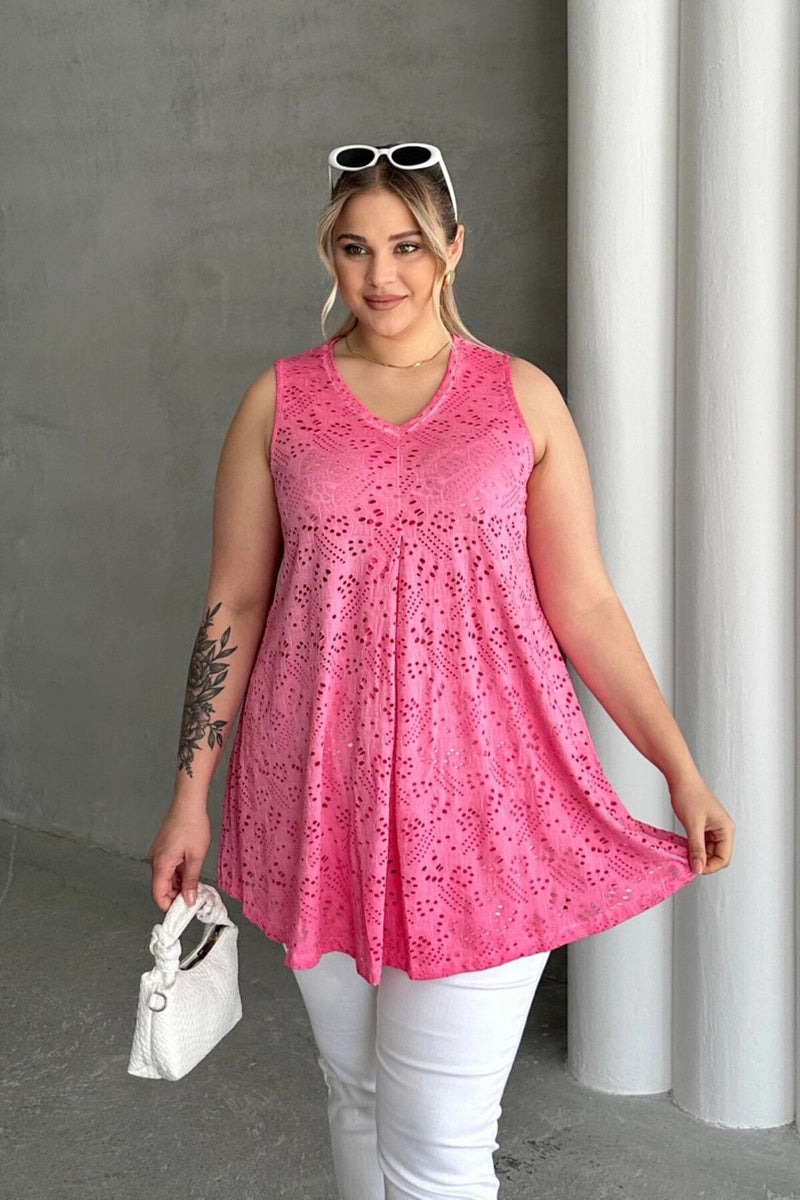 Büyük Beden V Yaka Sıfır Kol Dantel Detaylı Astarsız Bluz 302967