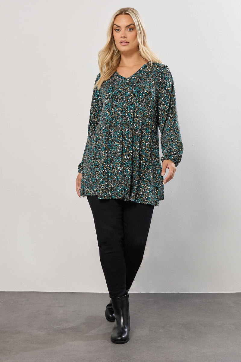 Büyük Beden V Yaka Uzun Kollu Çiçek Desenl T-shirt 322980