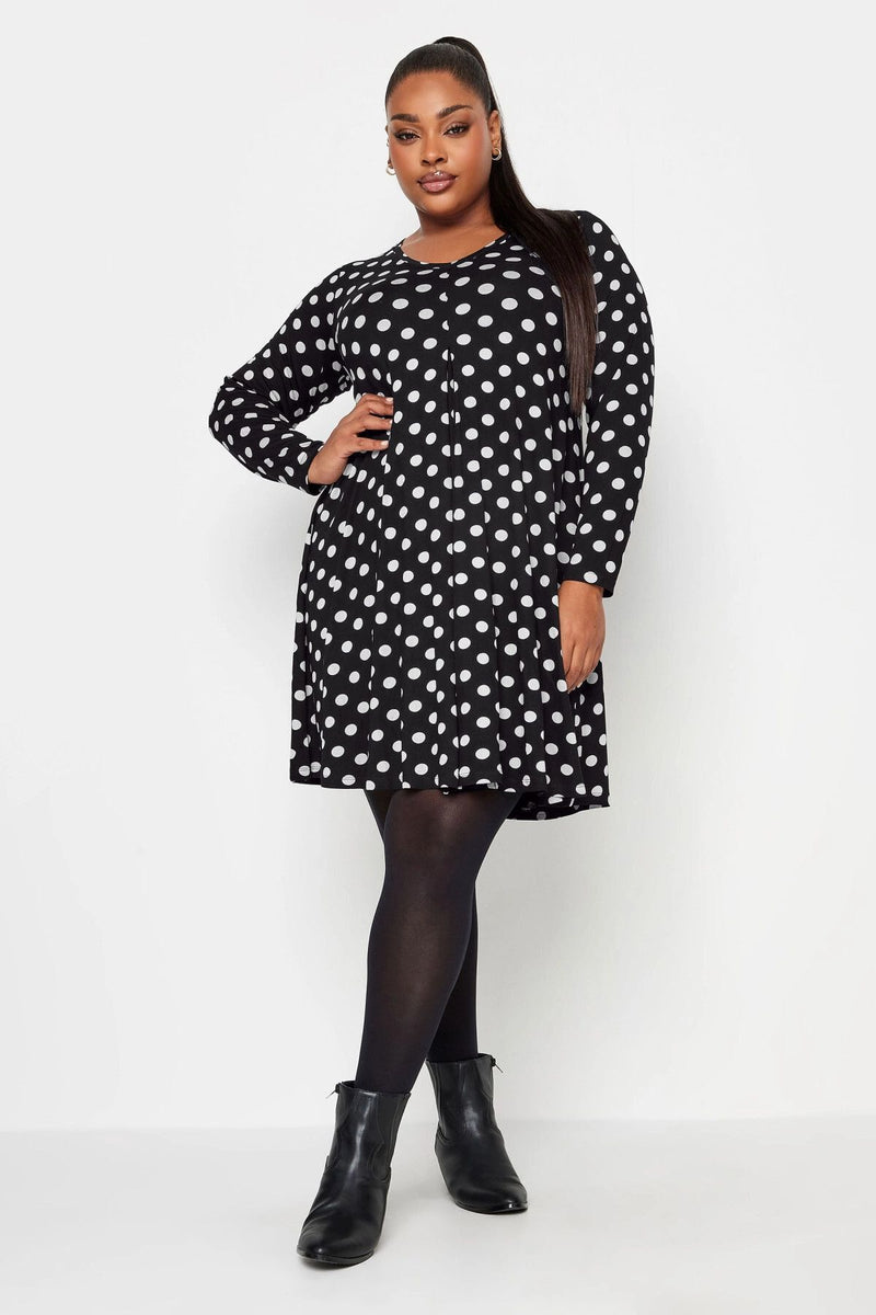 Büyük Beden V Yaka Uzun Kollu Puantiyeli Kısa Elbise 302738
