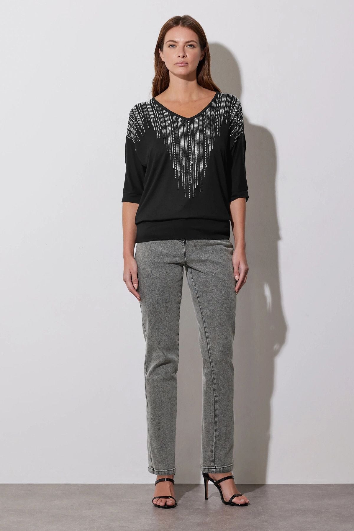 V Yaka Yarım Kollu Yakası Taş İşlemeli Beli Lastikli Omuz Detaylı Bluz 110690