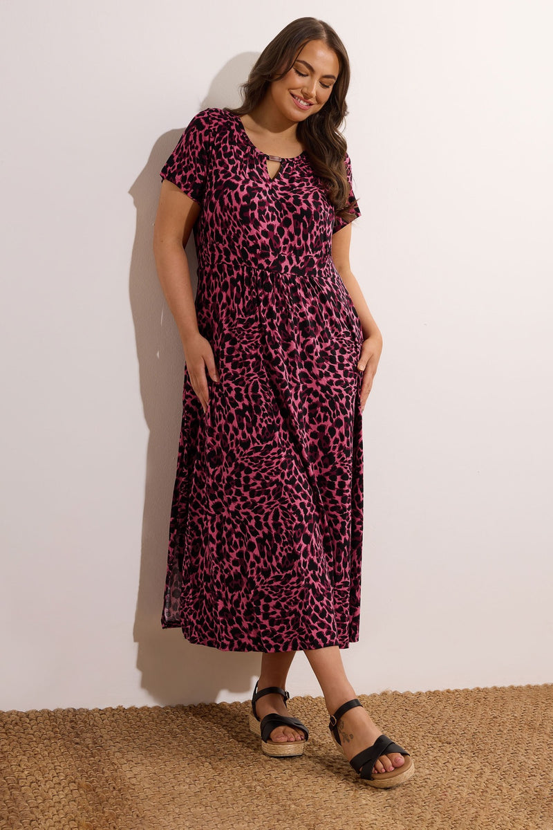 Büyük Beden Yaka Detaylı Kısa Kollu Cepli Yırtmaçlı Maxi Elbise 615605