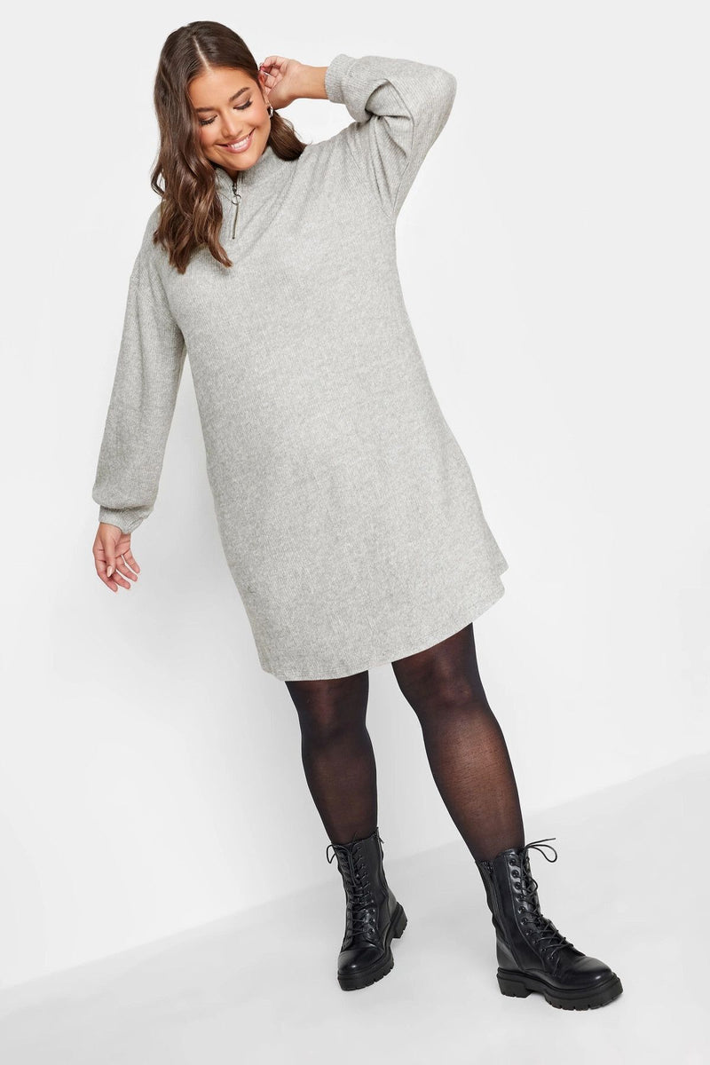 Büyük Beden Yakası Fermuarlı Uzun Kollu Midi Boy Elbise 302617