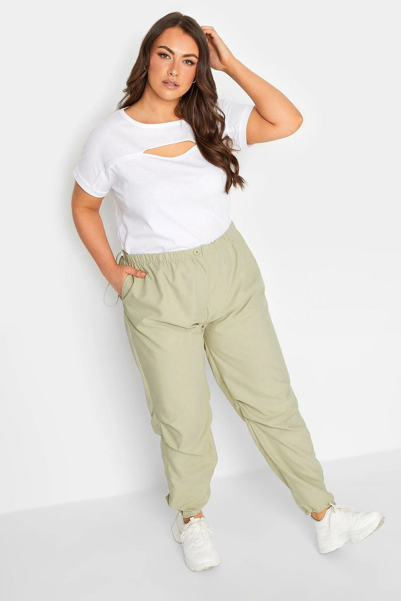 Büyük Beden Yanları ve Paçaları Büzmeli Lastikli Paraşüt Kumaş Pantolon 302028