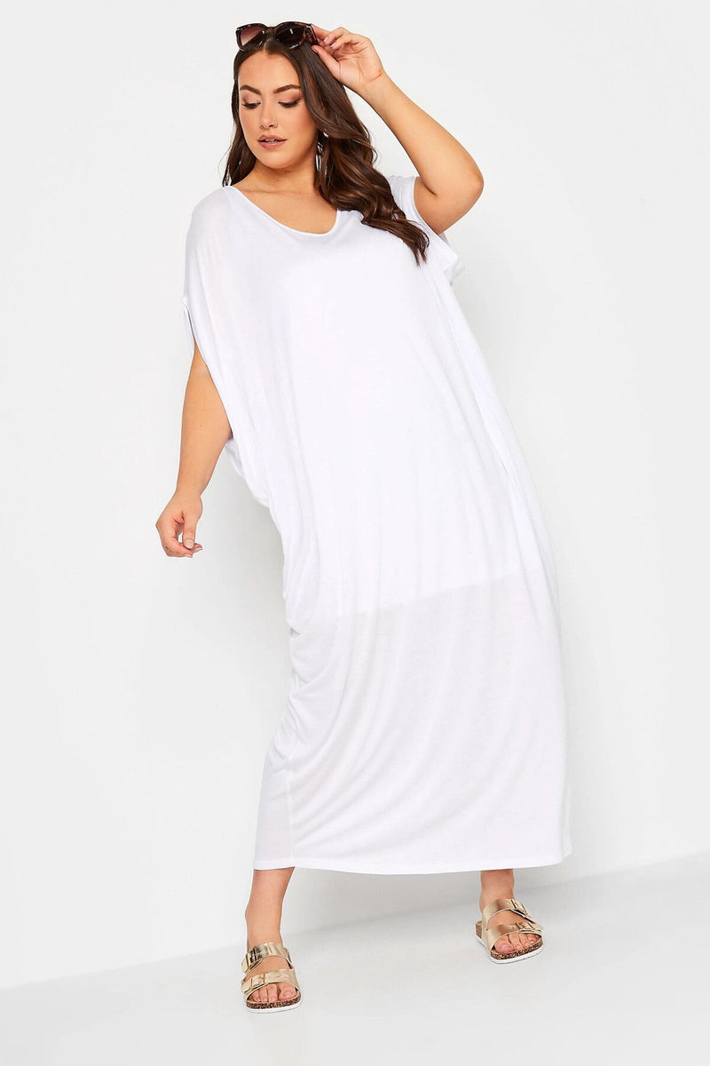 Büyük Beden Yarasa Kol Detaylı Midi Boy V Yaka Astarlı Elbise 302166