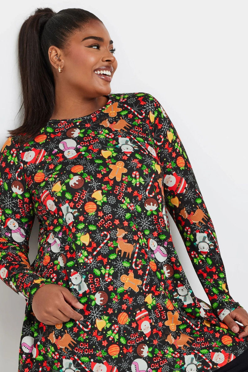Büyük Beden Yılbaşı Temalı Bisiklet Yaka Uzun Kollu Eteği Bollaşan Bluz 322215