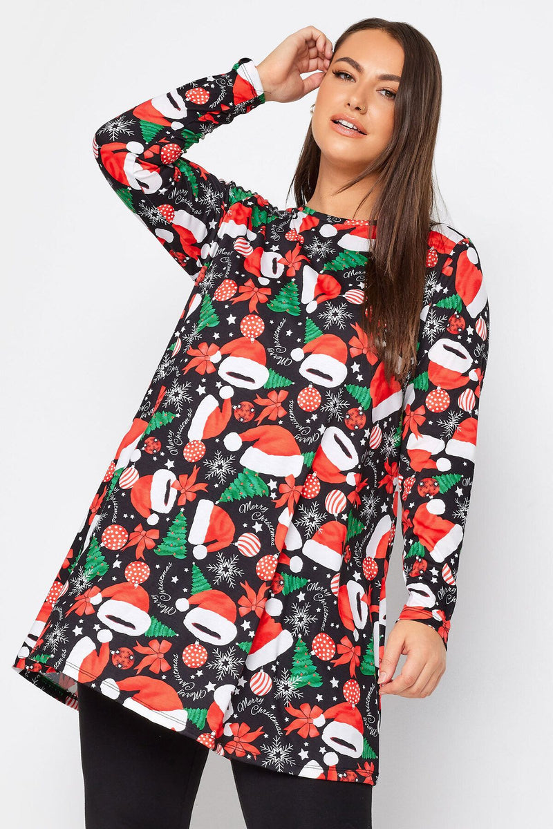 Büyük Beden Yılbaşı Temalı Bisiklet Yaka Uzun Kollu Uzun Kesim Bluz 321243
