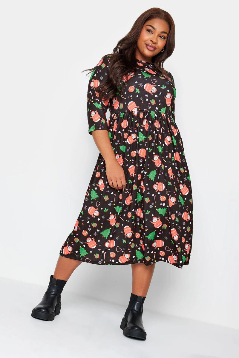 Büyük Beden Yılbaşı Temalı Bisiklet Yaka Yarım Kollu Maxi Boy Elbise 215927