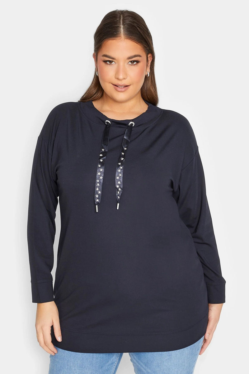 Büyük Beden Yıldız İşlemeli İpli Yaka Uzun Kesim Sweatshirt 301639