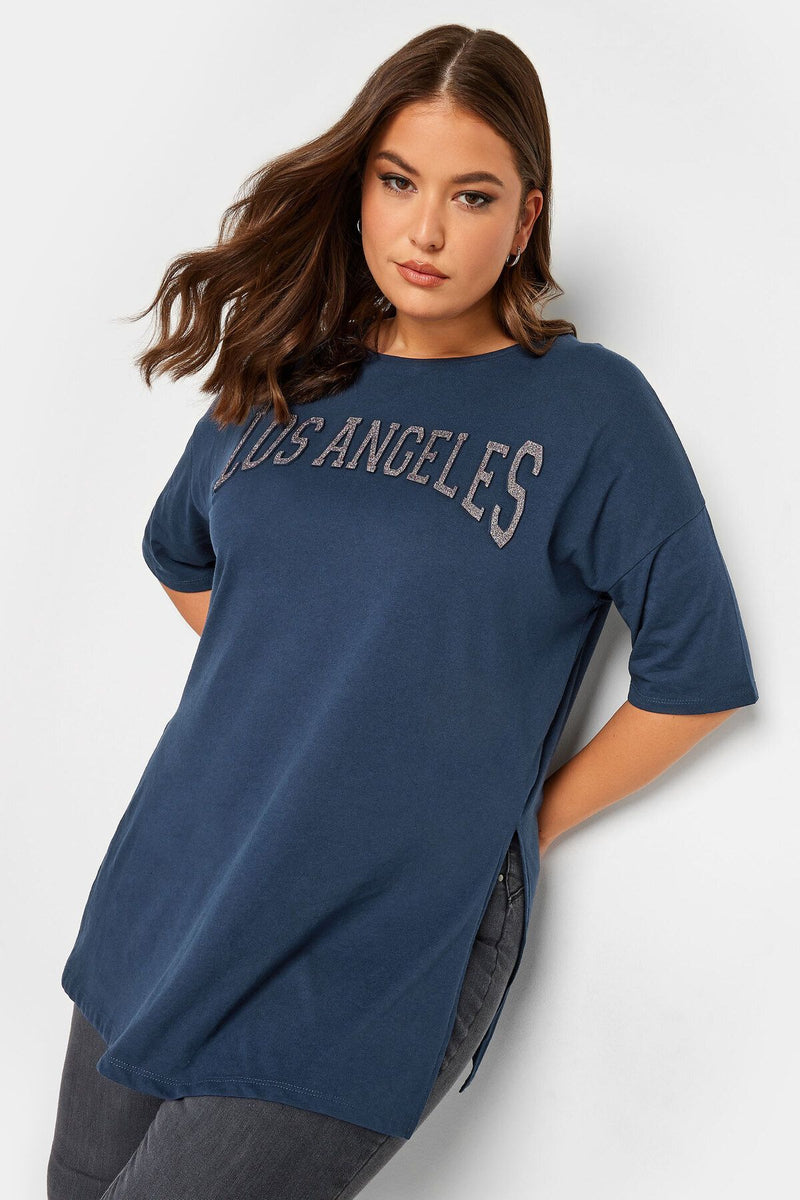 Büyük Beden Yırtmaç Detaylı Kabartma Detaylı Bisiklet Yaka Yarım Kollu T-shirt 302204