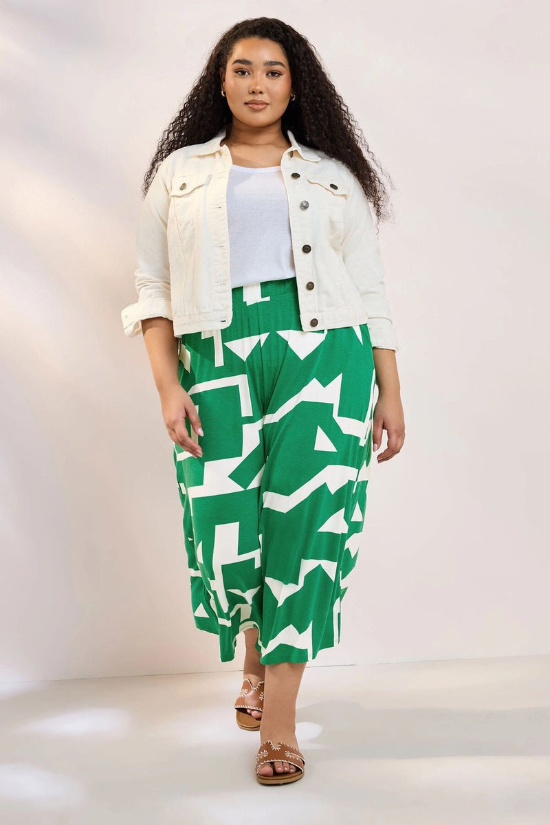 Büyük Beden Yüksek Bel Lastikli Cepli Bol Paça Kapri Pantolon 304118