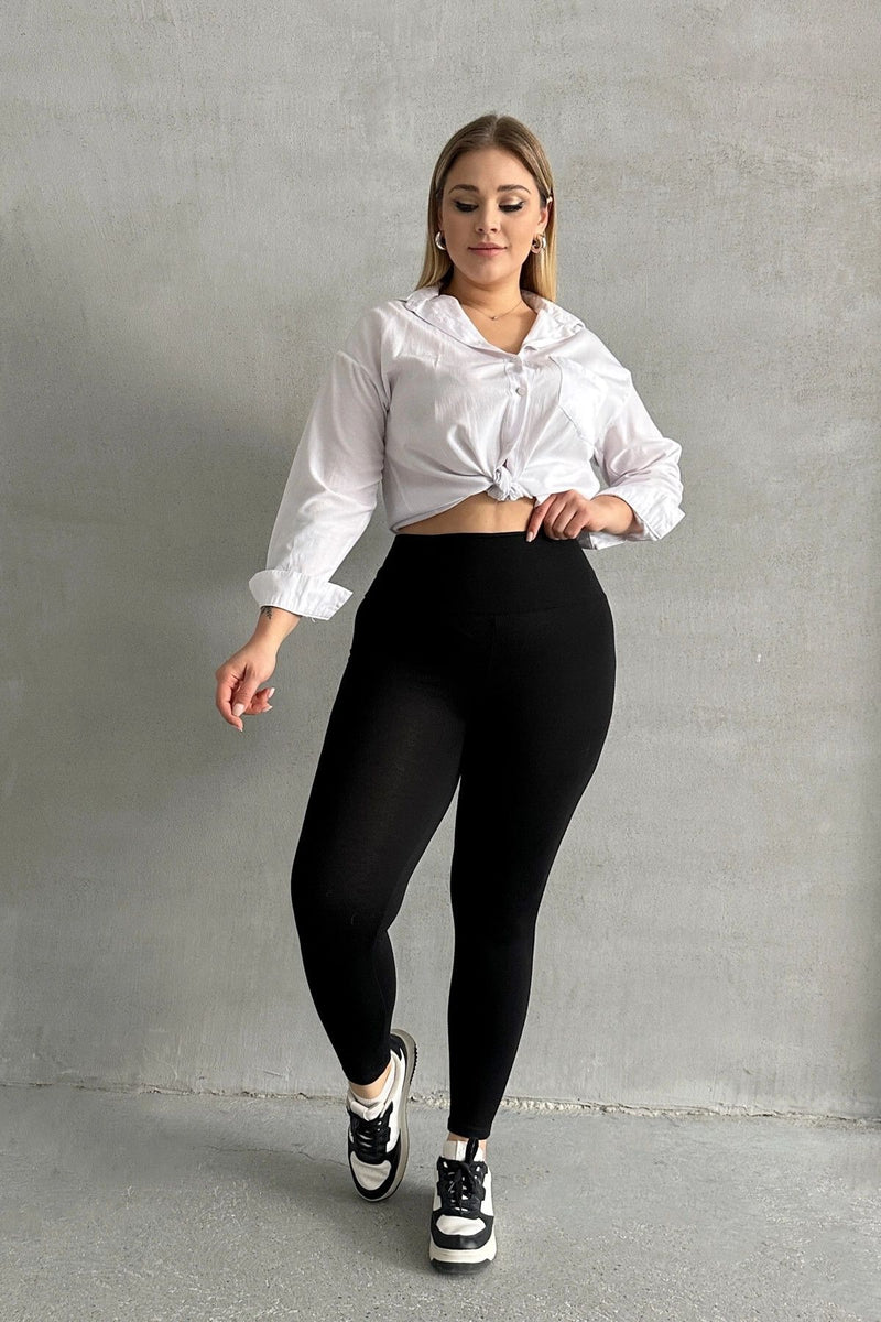 Büyük Beden Yüksel Bel Vücudu Saran Spor Tayt 038396