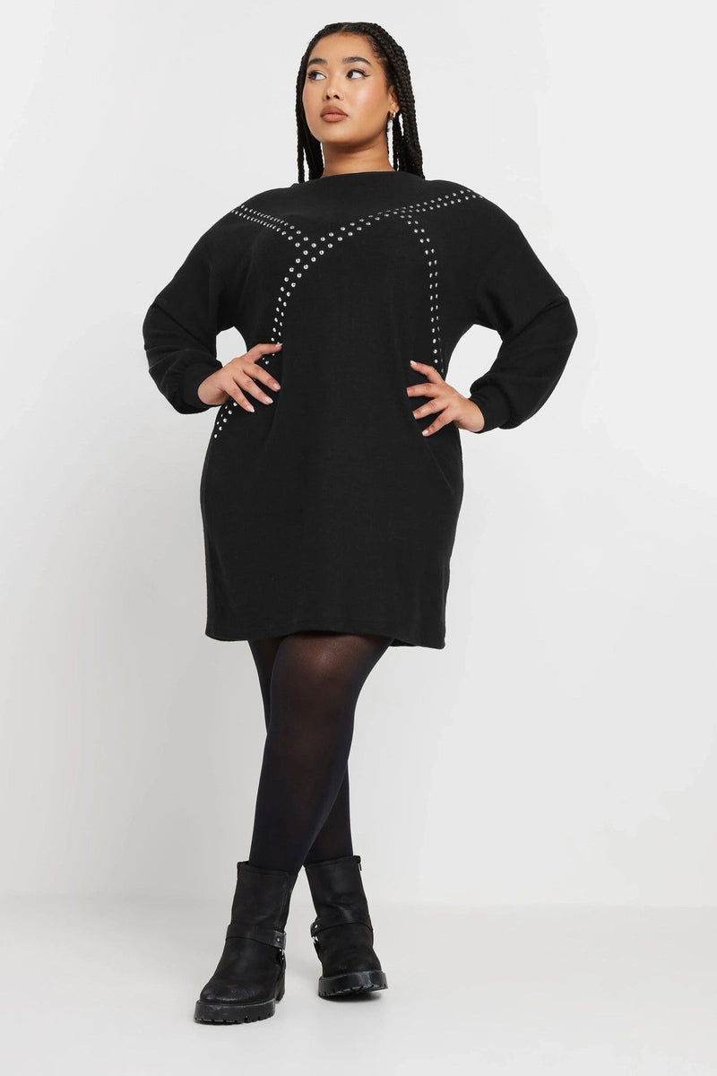 Büyük Beden Yumuşak Dokulu Uzun Kollu Bisiklet Yaka Mini Elbise 285038